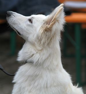 Einfach nur bervig waren dann die haufenweise vertretenen frechen kleinen Lümmels, die man Chihuahua nennt. Komisch, wenn ich rumblaffe, dann sagt mir Frauchen immer, ich soll das lassen, bei denen hat das keiner gesagt. Oder nur dann, wenn sie still halten sollten, weil man noch irgendwie ein Härchen toupieren musste, damit es richtig liegt .... Oh Mann, ich hab die dann einfach ignoriert und mich bequem auf dem noch feuchten Boden nieder gelassen. hat mein Frauchen nicht gejuckt, obwohl so eine nervöse Schnepfe meinte, dass sei meinem weißen Fell bestimmt nicht sehr zuträglich. Frauchen grinste da nur und meinte, ich sei ein Hund und kein Barbiepüppchen. War mir recht, die paar Minuten Bürsten am Vorabend fand ich auch genug. Scheinbar später so paar andere Leute auch ...